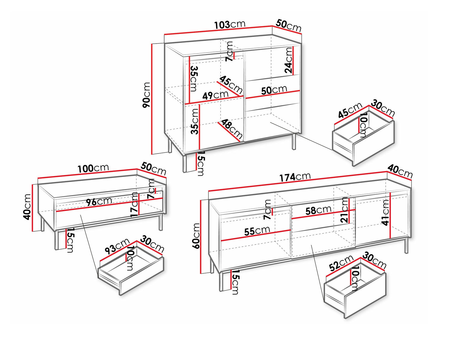 Komodos matmenys90 x 103 x 50 cm