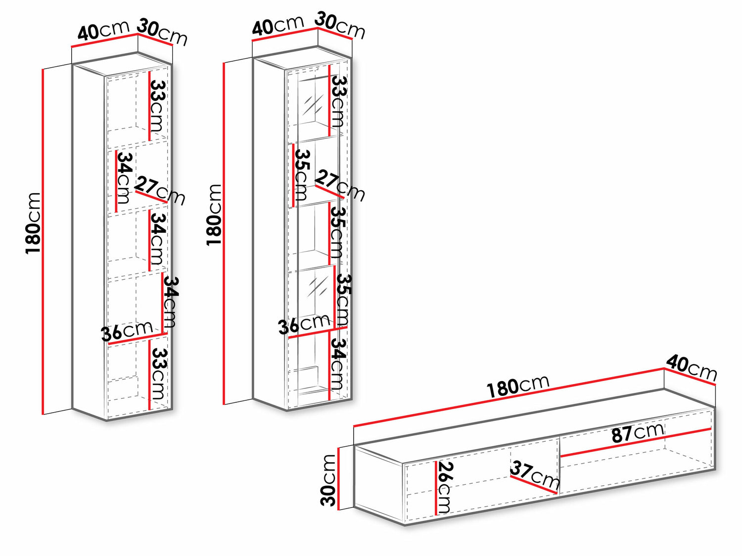 TV stalo matmenys30 x 180 x 40 cm