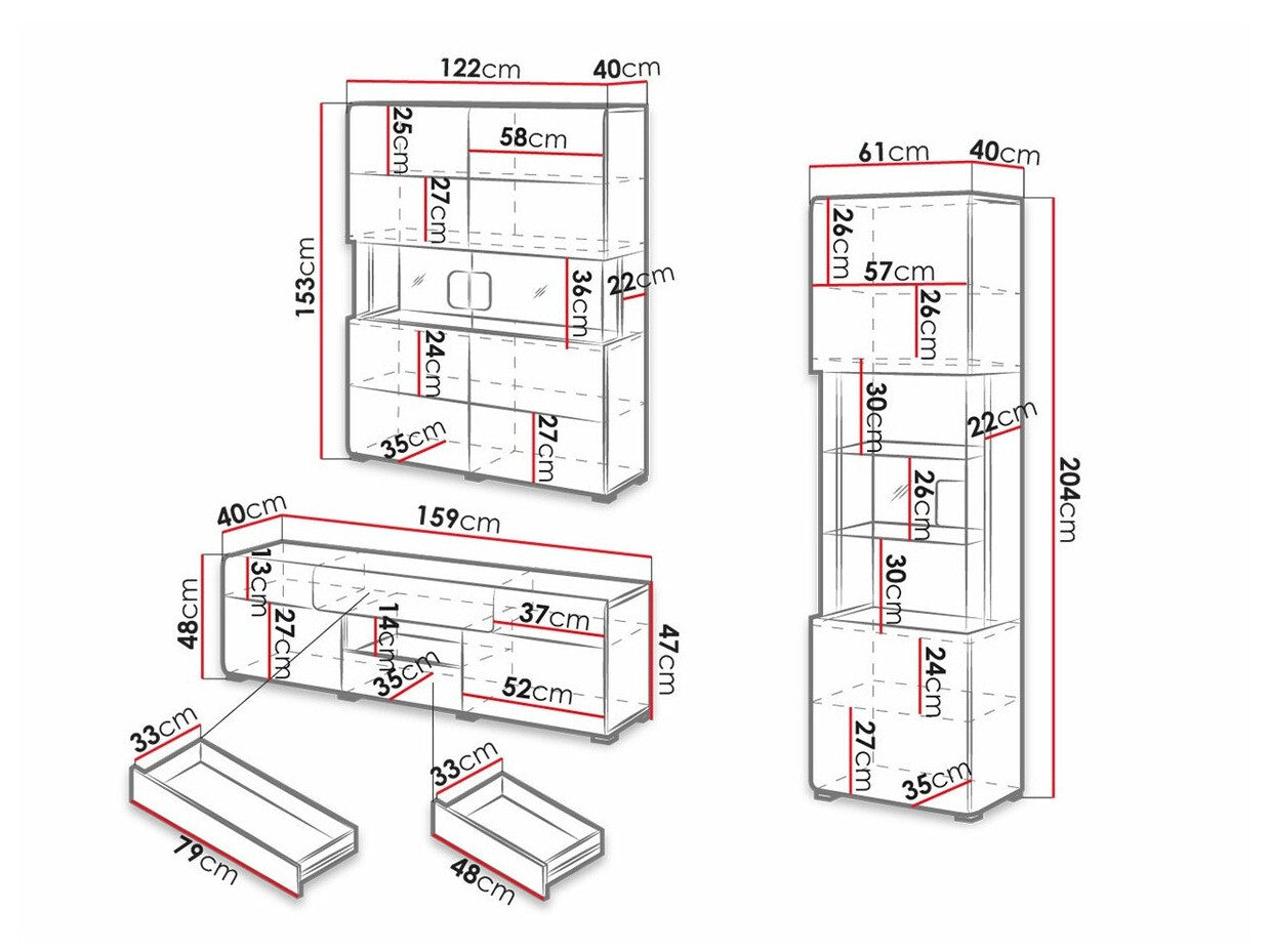 Lentynos matmenys204 x 61 x 40 x 122 x 40 cm
