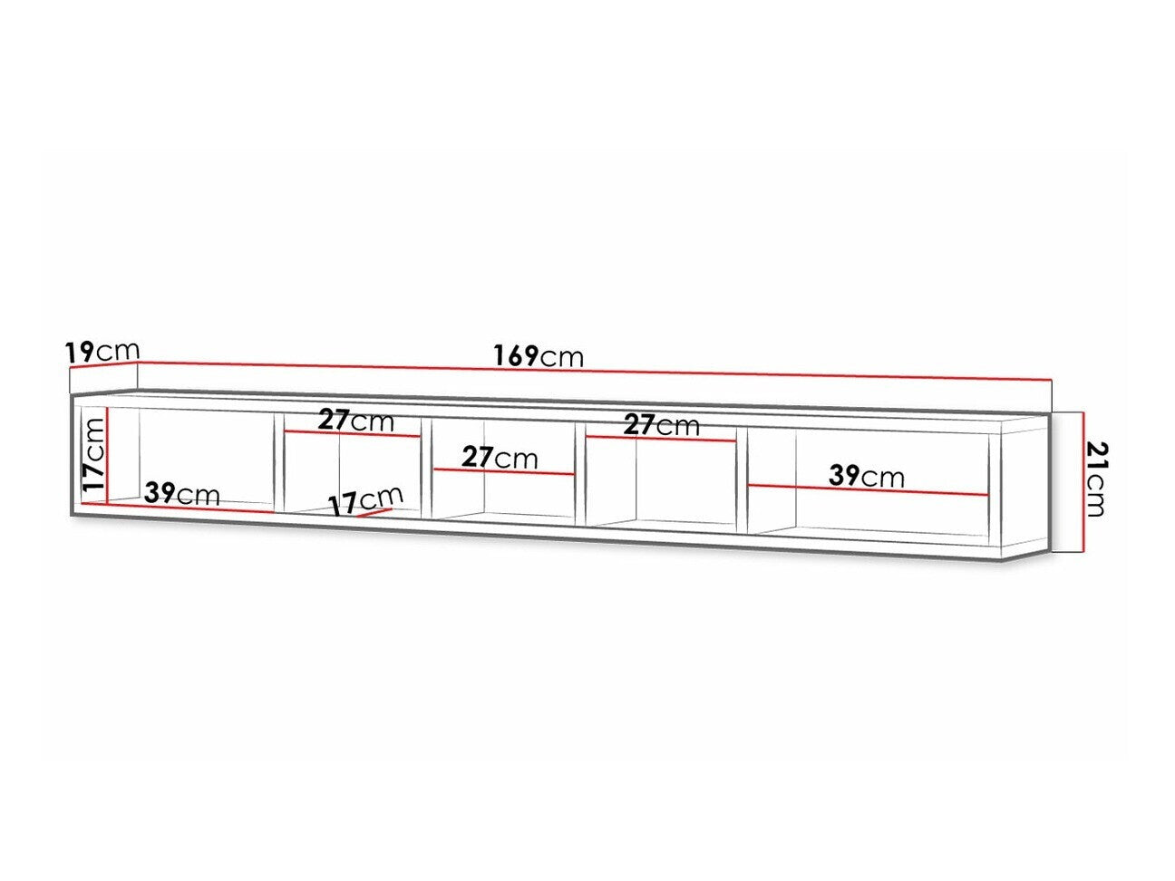 Pakabinamos lentynos matmenys21 x 169 x 19 cm