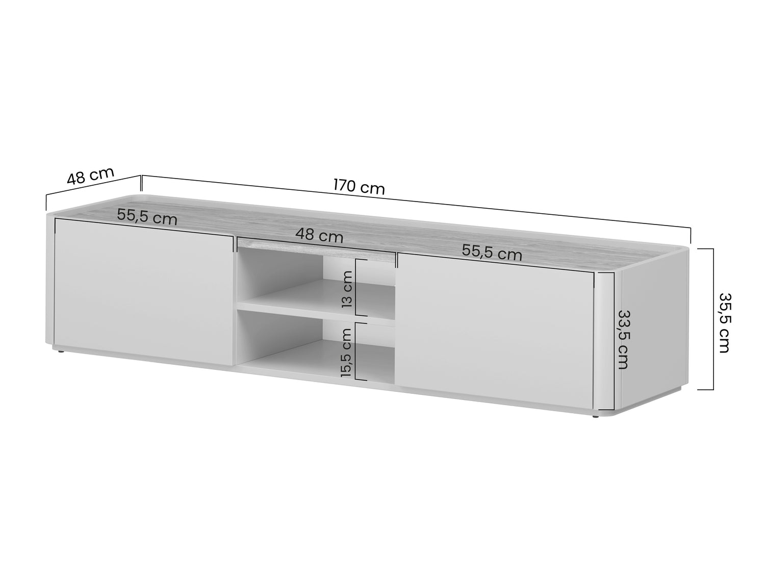 TV stalo matmenys35.5 x 170 x 48 cm
